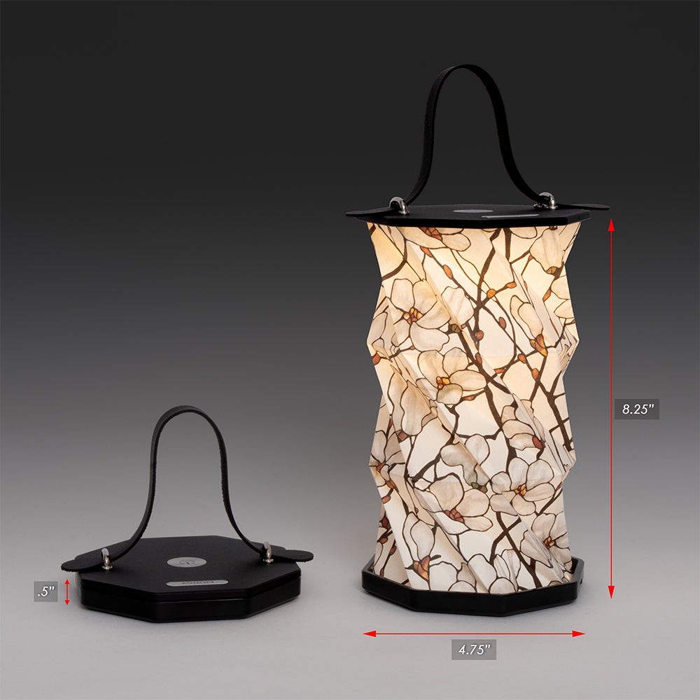 Modgy Origami Lanterns are a beautiful and entertaining way to enhance your décor or any event. They are rechargeable and can last for over five hours on a full charge, with a USB-C cord included for charging. The lanterns twist flat for easy storage, expand to three different sizes, and emit a warm, dimmable light. Additionally, they come with a convenient carrying and hanging strap for easy use.