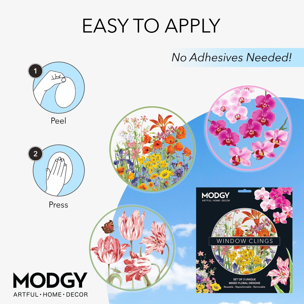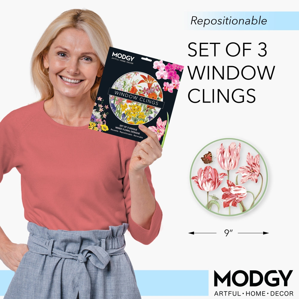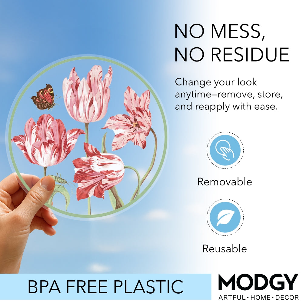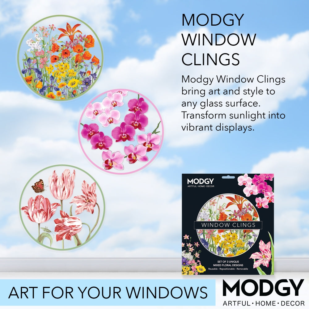 Modgy Window Clings bring art and style to your windows with vibrant, repositionable designs that transform sunlight into colorful displays. Each pack includes three unique designs, perfect for mixing, matching, or spreading throughout your space. Easy to apply—just peel and press—they cling without adhesives and leave no residue. Reusable and removable, they’re ideal for adding privacy, personality, and a pop of color to any glass surface at home, in the office, or in the classroom.